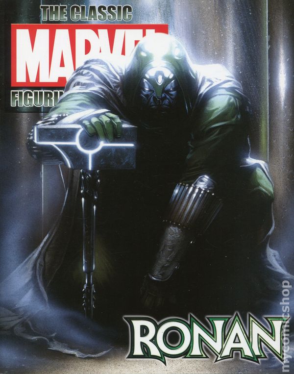 Special #19: Ronan - NOTE: Does NOT include Figurine. As 'Supreme Accuser of the Kree Empire' it's Ronan's duty to pass judgment on heroes and villains across the galaxy. Hailing from the distant planet Hela, Ronan has been at the forefront of the Kree's attempts to conquer Earth and dominate the entire Milky Way. A mighty warrior who dishes out his own brand of justice with his hammer, 'the Universal Weapon', Ronan has clashed with the likes of the Fantastic Four, the Avengers, and the Guardians of the Galaxy. Prepare to be judged with this special edition of Classic Marvel Figurine Collection Magazine featuring a comprehensive, 20-page magazine focusing on Ronan, complete with an imposing, hand-sculpted lead figurine and exclusive slipcase and double-sided poster. Slick card-stock cover, 24 pages, 8 1/2-in. x 11-in., full color.