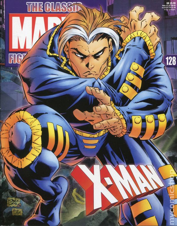 X-Man - NOTE: Figurine NOT included. This magazine provides a detailed history and background on the character, including exclusive images and interviews. Slick card-stock cover, 20 pages, 8 1/2-in. x 11-in., full color.