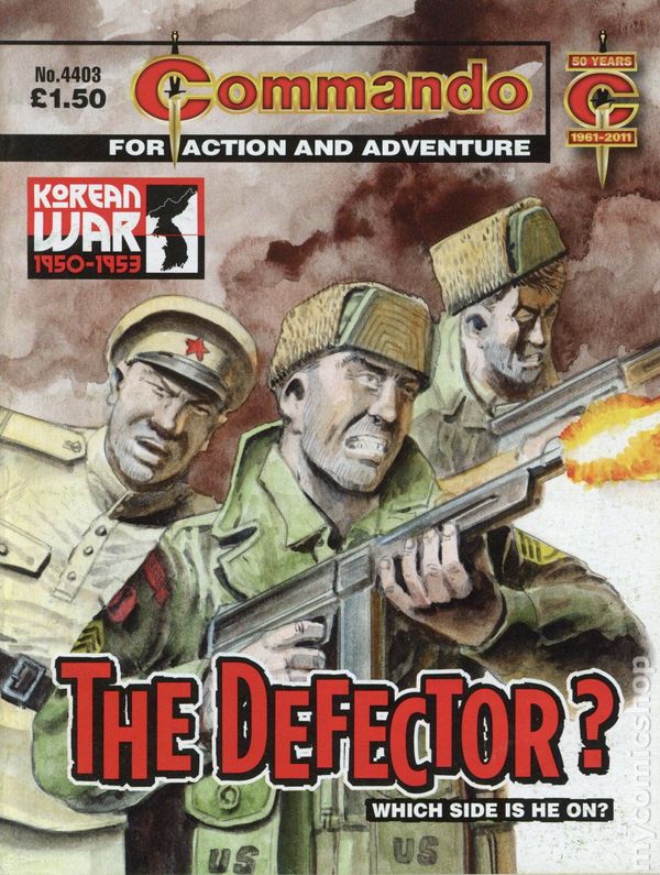 The Defector? - Written by Ferg Handley. Art and Cover by Keith Page. Lieutenant Levka Kosilev was a man of principle, a man who would repay a debt of honour. The Russian officer had only survived the dark days of World War II thanks to the actions of a brave American corporal and his squad. He knew how much he owed them. Some years later, Levka -- now an observer with the forces of the North during the Korean War -- unexpectedly found himself in a position to settle the debt. To do so, however, he would have to defect. Could he do it? Weekly British War comics digest. Softcover, 5 1/2-in. x 6 1/2-in., 68 pages, B&W.