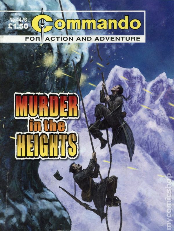 Murder in the Heights - Written by Alan Hebden. Art by Luis Olivera. Cover by Janek Matysiak. The history books of the First World War concentrate on events on the Western Front in France, the scene of the fiercest battles the world had ever seen. The fighting, though, was not confined to France, for all over Europe, armies faced each other. In Greece, Italians, Greeks, Austrians and Germans battled it out on the plains and in the mountains. Into this cauldron rode British Army Lieutenant John Fielding, little guessing that some of his enemies were prepared to go beyond the normal rules of war. Weekly British War comics digest. Softcover, 5 1/2-in. x 6 1/2-in., 68 pages, B&W.
