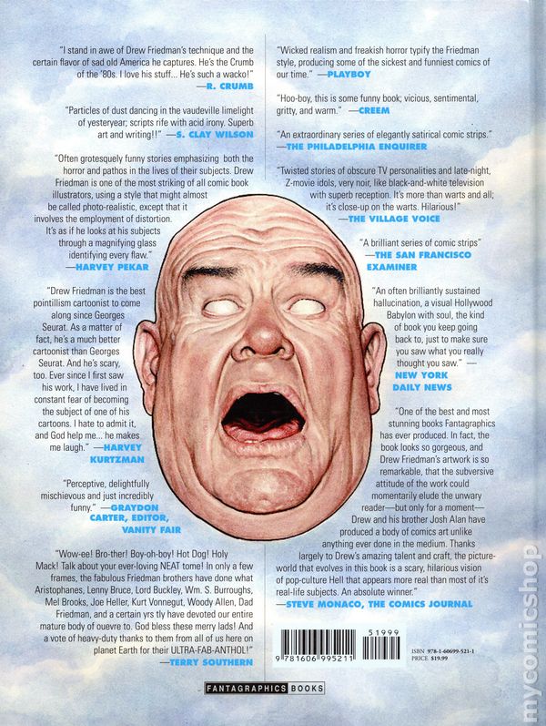 5th Edition - 1st printing. Text by Drew Friedman and Josh Alan Friedman. Art and cover by Drew Friedman. Finally back in print, Any Similarity... is a collection of Drew Friedmans earliest comic strips and illustrations, featuring his most obsessively stippled black-and-white panels and his most hilarious wise-guy takes on the stars and demi-stars and never-quite-stars of that swamp we like to call showbiz.In these strips, many of them written by his brother Josh Alan Friedman (both are sons of the legendary Bruce Jay Friedman: humor genes will tell!), the artist works out his obsession with such celebrities as Jim Nabors, Frank Sinatra Jr., Joe Franklin, Bob Hope, Andy Griffith... and Ed Wood, Jr. film star Tor Johnson, whom Friedman actually catapulted back into some sort of semi-fame when these strips were first published in the 1980s.Friedman is the kind of pop-culture aficionado whose Three Stooges worship is focused not on Moe, Larry or Curly but on Shemp (whose unmistakable mug graces the new cover of this edition), and whose teasing adoration can often be mistaken for mockery or contempt. But who but a worshipful fan would lavish quite so many dots on the loving delineation of these greats every pimple and wrinkle? Hardcover, 9 1/2-in. x 12-in., 92 pages, B&W. Cover price $19.99.