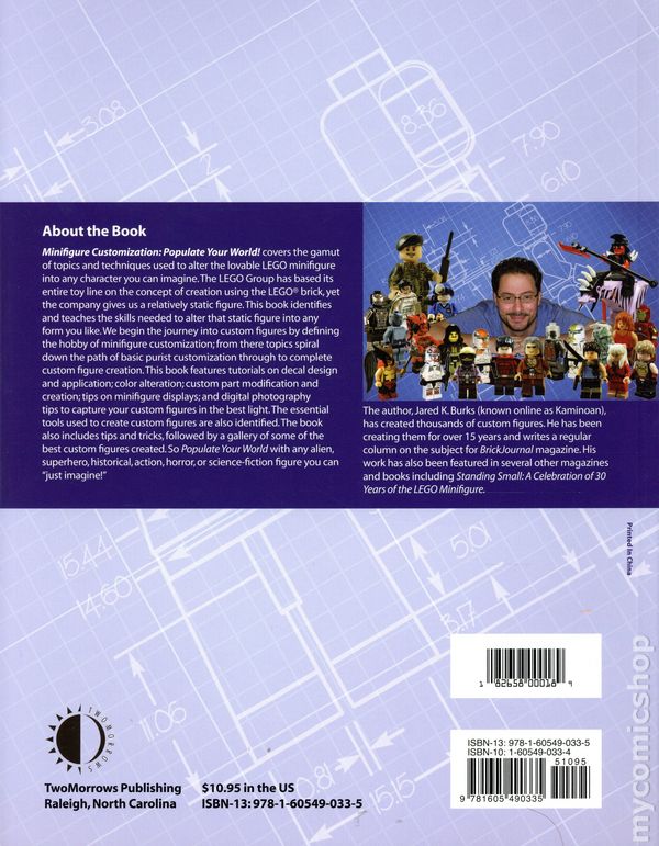 Volume 1 - 2nd and later printings. "Populate Your World!" NEW PRINTING! Minifigure Customization: Populate Your World! shows you the wide range of techniques you can use to alter the lovable LEGO Minifigure into any character you can imagine! BrickJournal columnist and author Jared K. Burks has created thousands of custom minifigs over the last 13 years, and this full-color book assembles his knowledge into a series of step-by-step tutorials on decal design and application, color alteration, custom part modification and creation, plus tips on minifigure displays and digital photography to capture your custom figures in the best light-all the way through complete custom figure creation! Essential tools are identified, plus there's a tips and tricks section, and a gallery of some of the best custom figures ever created! Don't live inside the box-populate your world with any alien, superhero, historical, action, horror, or science-fiction figure you can "just imagine"! Softcover, 8-in. x 11-in., 80 pages, Text (with full color Illustrations and pictures). Cover price $10.95.