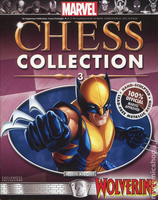 #03 Wolverine (White Knight) - NOTE: Magazine Only - The Marvel Chess Collection is a new bi-monthly series offering the comic fan and chess lover alike the chance to collect a uniquechess set, featuring some of the greatest and most loved Marvel characters. The first set in the Marvel Chess Collection consists of the greatest heroes and villains from across the Marvel Universe. Will Spider-Man survive against Venom? Can Captain America overcome the villainous Red Skull? Or will the forces of evil defeat the assembled heroes? With the Marvel Chess Collection the battle is in your hands! Slick card-stock cover, 16 pages, 8 1/2-in. x 11-in., full color. Slick card-stock cover, 16 pages, 8 1/2-in. x 11-in., full color.