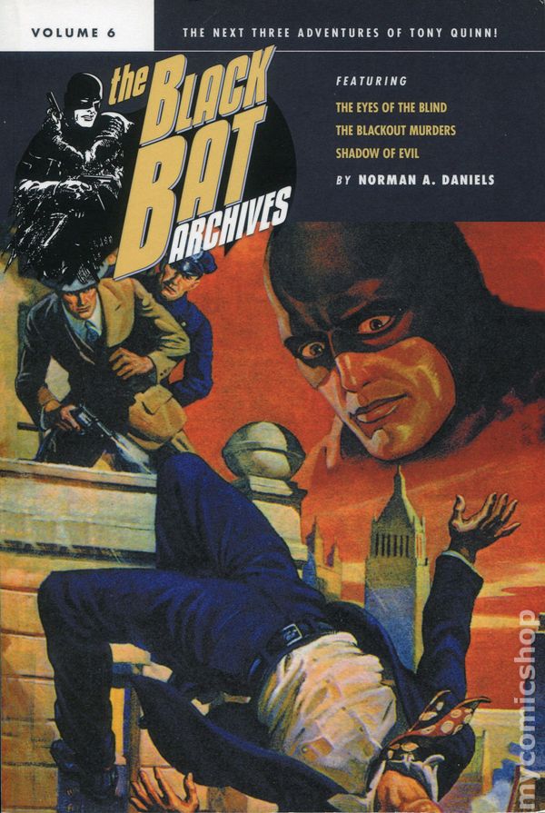 Vol. 6 of the complete reprinting of the Black Bat. By Norman Daniels and V.E. Pyle. Blinded by a criminal's acid, DQ Tony Quinn is given a second chance thanks to an operation which not only restores his vision but also gives him the ability to see at night. Aided by Carol Baldwin, Butch O'Leary and Silk Kirby, crime doesn't stand a chance against the Black Bat! 6-in. x 9-in., 328 pages, black and white. Cover price $19.95.