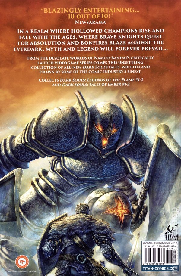 2nd and later printings. Collects Dark Souls Legends of the Flame (2016) #1-2, and Dark Souls Tales of Ember (2017 Titan) #1-2. Written by George Mann. Art by Alan Quah. BASED ON THE WORLD OF THE GLOBAL HIT VIDEO GAME SERIES, DARK SOULS! WRITTEN AND DRAWN BY SOME OF THE INDUSTRY'S BRIGHTEST TALENTS! Softcover, 128 pages, full color. Cover price $16.99.