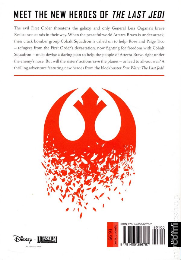1st Printing. Written by Elizabeth Wein. Meet the new heroes of the Last Jedi! The evil First Order threatens the galaxy, and only General Leia Organa's brave Resistance stands in their way. When the peaceful world Atterra Bravo is under attack, their crack bomber group Cobalt Squadron is called on to help. Rose and Paige Tico - Refugees from the First Order's devastation, now fighting for freedom with Cobalt Squadron - must devise a daring plan to help the people of Atterra Bravo right under the enemy's nose! But will the sister's actions save the planet or lead to all-out war!?! Softcover, 6-in. x 8-in. 280 pages, text only.