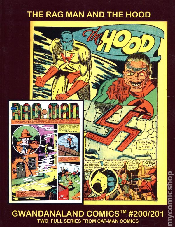 Volume 200/201 - 1st Printing. "The Rag Man and The Hood!" Collects material from Catman Comics (1941) #1-23. These budget friendly reprints of classic western sci-fi, horror, and adventure comics feature some of the best in public domain comic book reprints. Softcover, 8 1/2-in. x 11-in., 324 pages, full color.