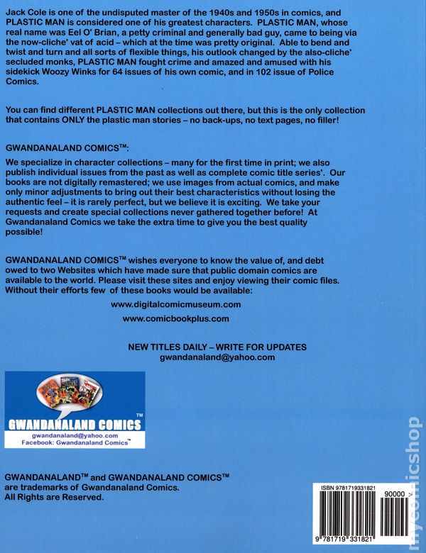 Volume 802A - 1st Printing. "Plastic Man Volume 2-A!" Collects material from Plastic Man (1943 Vital/Quality) #11-15. These budget friendly reprints of classic western sci-fi, horror, and adventure comics feature some of the best in public domain comic book reprints. Softcover, 8 1/2-in. x 11-in., 310 pages, full color