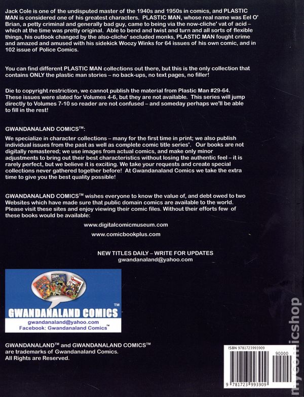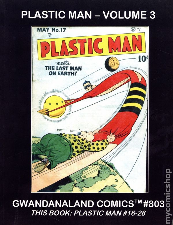Volume 803 - 1st Printing. "Plastic Man Volume 3!" Collects material from Plastic Man (1943 Vital/Quality) #16-28. These budget friendly reprints of classic western sci-fi, horror, and adventure comics feature some of the best in public domain comic book reprints. Softcover, 8 1/2-in. x 11-in., 388 pages, full color