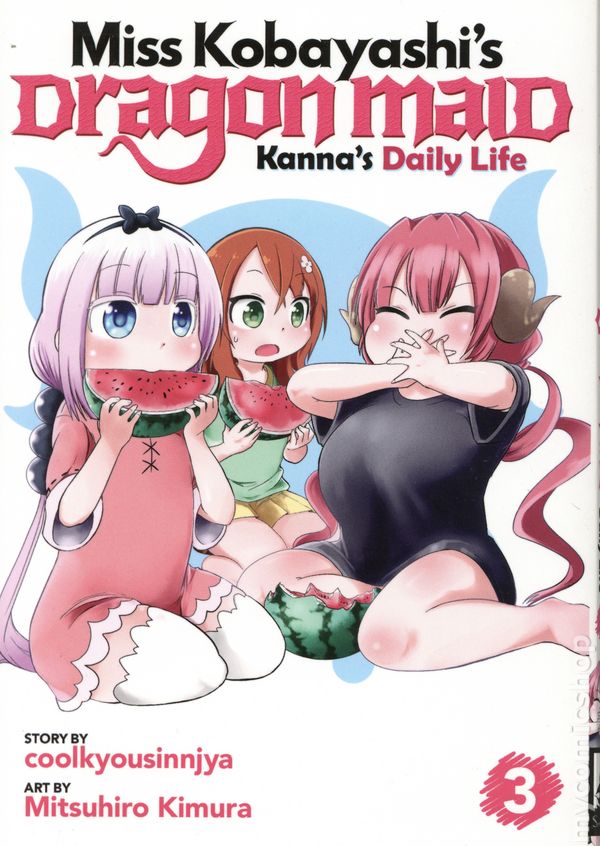 Volume 3 - 1st printing. Written by Coolkyousinnjya. Art and cover by Mitsuhiro Kimura. Translated by Jenny McKeon. The brand-new Miss Kobayashi's Dragon Maid spin-off series starring the fan favorite dragon, Kanna! After leaving her otherworldly home to find her fellow dragon, Tohru, young Kanna found herself unofficially adopted by Tohru and her human companion, Miss Kobayashi. From attending elementary school to making new friends, Kanna learns to adjust to the human world with the curiosity and cuteness that only a young dragon could have! Softcover, 5-in. x 7-in., 180 pages, B&W. Teen (13+) Cover price $12.99.