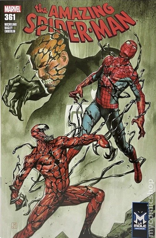 La Mole Comic Con Exclusive Variant Cover by Jorge Molina. Reprints Amazing Spider-Man (1963 1st Series) #361. Story by David Michelinie. Art by Mark Bagley and Randy Emberlin. Spanish Language.