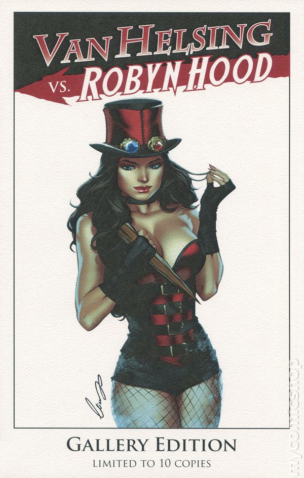 Gallery Edition Cover by Elias Chatzoudis - Limited to 10 copies. Written by Ralph Tedesco. Art by Allan Otero and Leonardo Paciarotti. ZENESCOPE CO-FOUNDER & WRITER RALPH TEDESCO SETS VAN HELSING AND ROBYN HOOD ON A COLLISION COURSE THAT WILL SHAKE THE UNIVERSE TO ITS CORE! Robyn and Liesel learn that they're each separately on the trail of a seedy crime boss who's experimenting on humans while developing an extremely dangerous designer drug. But neither Robyn nor Liesel is prepared for what they'll uncover as the two long-time friends find themselves face to face in an epic battle to the death! 32 pages, full color. Rated T