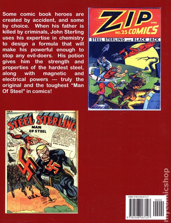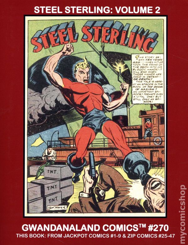 Volume 270 - 1st Printing. "Steel Sterling Volume 2!" Collects material from Zip Comics (1940) #25-47. These budget friendly reprints of classic western sci-fi, horror, and adventure comics feature some of the best in public domain comic book reprints. Softcover, 8 1/2-in. x 11-in., 356 pages, full color.