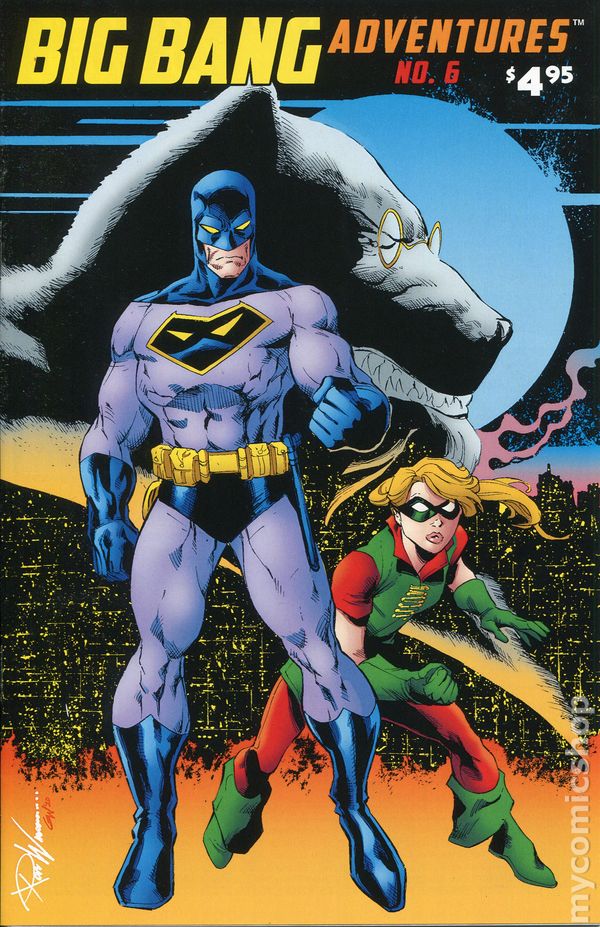 Cover by Ron C. Williams. Story by Gary S. Carlson. Art by Ron C. Williams and Gianluca Cerritelli. Knight Watchman and his daughter Galahad run afoul of the long-time behind the scenes crimelord known as Mr. Snow. Thunder Girl meets a brand new adversary known as the belligerent Balloon Man. And writer Scott Casper introduces Big Bang fans to a role-playing version of the classic Big Bang adventure The Shrine of Crime starring the Badge and his Rookies! Full Color. 36 pages. Cover price $4.95.