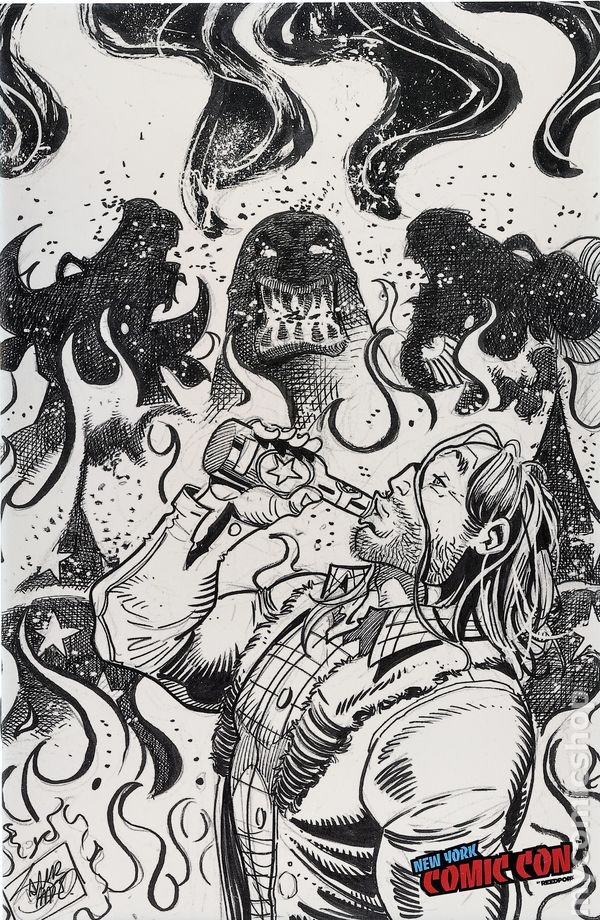 New York Comic Con Exclusive B&W Sketch Edition Virgin Cover by Samir Simao. Written by Adam Barnhardt. Art by Samir Simao. The world once had an Age of Heroes, where Legend, the Principled Protector of Peace, and his Legion defended the Earth from threats far and wide. Then, in the blink of an eye, unimaginably horrific forces catapulted the Age of Heroes into extinction! Now, as people wander aimlessly through a hero-less world, The Magnificent McCoys travel far and wide to showcase their powers for the almighty penny. Led by the drunkard Richard McCoy - the hero once known as Legend - the McCoys try to find normalcy in a world that is just slivers of what it once was. As the dust finally begins to settle, the dark force that looked to conquer the world returns to finish the job it started. Can Legend remain sober enough to put this mysterious force down once and for all? 28 pages, full color. Mature Readers