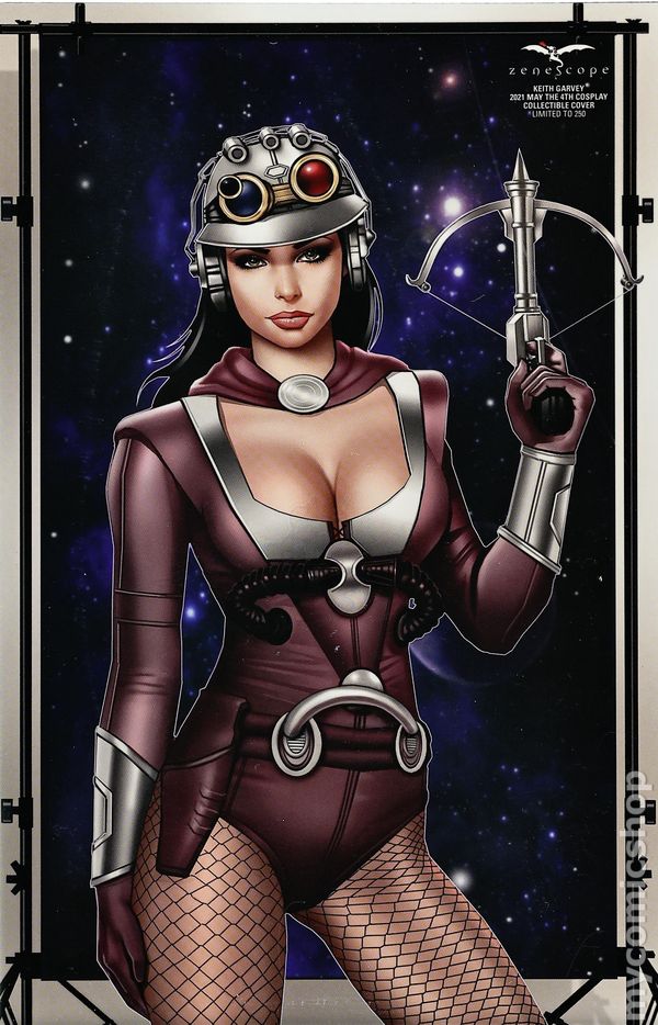 May The 4th Topless Cosplay Collectible cover by Keith Garvey - Limited to 100 copies. Written by Lou Iovino. Art by Vicente Cifuentes. Van Helsing is heading to Los Angeles with every intention of soaking up the sun for a much-needed vacation. But, not even a trip to the west coast can be easy for the famed vampire hunter, as a new team of steam-powered villains are going to do their part to cut this trip short. Liesel will have to use every trick in her book to stand a chance against this new threat! 40 pages, full color. Rated T Cover price $5.99.