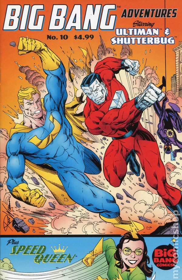Cover by Ron C. Williams. Story by Gary S. Carlson and Gianluca Cerritelli. Art by Ron Williams and Gianluca Cerritelli. The high-flying Shutterbug becomes Public Enemy #1 when Dexter Cortex, the man who uploaded his brain into the internet takes control of the alien technology in SBs suit. Then, in a blast from Ultimans past, his grown up daughter Christie arrives as Ultrawoman from the future to foil a plot by Cortex to alter time. And Speed Queen, the vixen of velocity runs into a gang of crooks that learned to teleport in this Golden Age tale. Full Color. 36 pages. Cover price $4.99.