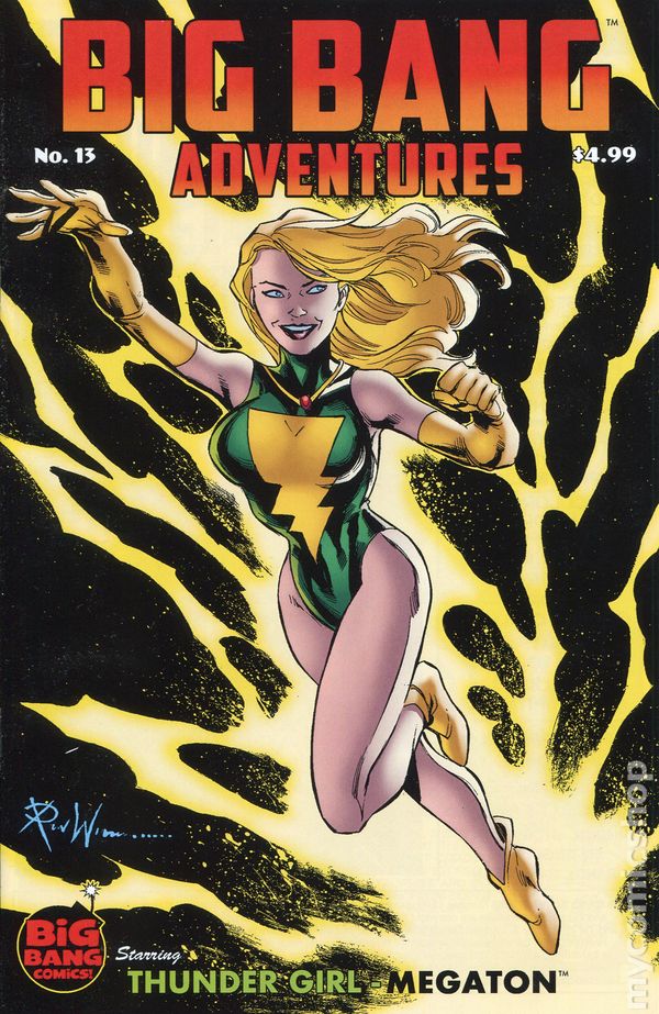 Cover by Ron C. Williams. Story by Gary S. Carlson. Art by Ron Williams. Megatons 40th anniversary continues as he is summoned to a remote island where Ultiman, who the world thinks is dead, has been laying low since losing his superpowers years previously. The Ultimate Human Being is concerned about some erratic behavior by his robots on the island and wants Megaton to check on the androids that are still in his sanctum in the Rocky Mountains. Also, Thunder Girl is amazed to discover a giant squid in a fountain in the town where she lives. It turns out to be the work of an old enemy known as Hydro, who has a body formed completely out of water with a mastery of the H2O. Finally, there is a role-playing game based on a Venus story from the very first issue of Big Bang Comics published back in 1994 by Caliber Press. Full Color. 36 pages. Cover price $4.99.