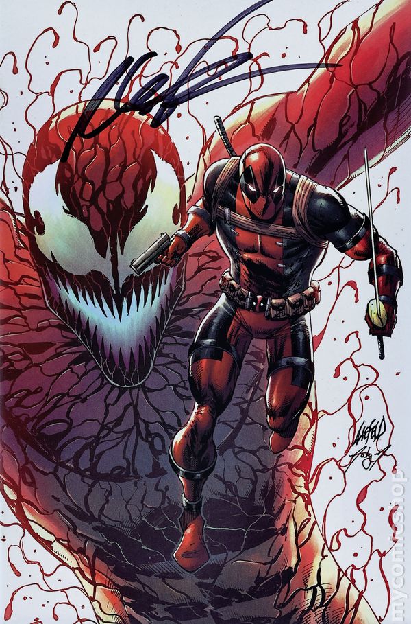 Liefeld Creations Exclusive Virgin Cover by Rob Liefeld. Written by Phillip Kennedy Johnson. Art by Manuel Garcia. IT'S ALL COME DOWN TO THIS! CARNAGE WINS! 36 pages, full color. Rated T+ NOTE: Generic image is of a signed copy, this does not necessarily reflect all copies. Cover price $4.99.
