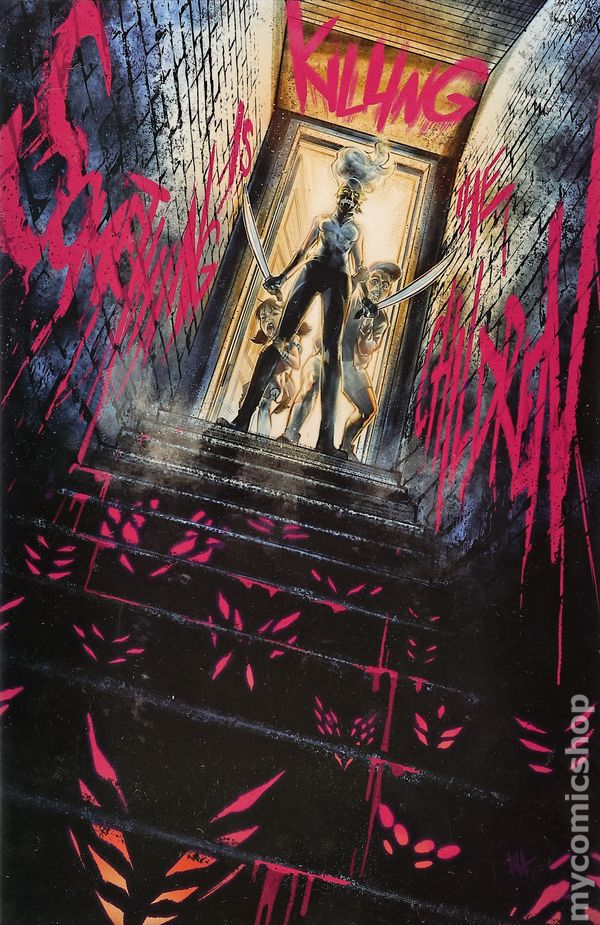 Slaughter Pack variant by David Mack. Written by James Tynion IV. Art by Werther Dell'Edera. Cover by Jenny Frisson. Erica may have slayed the beast terrorizing Archer's Peak, but the town is far from safe. As James recuperates from the horrible events of the last issue, Tommy also struggles to find his place in the new status quo of his life. 28 pages, full color. Rated T+