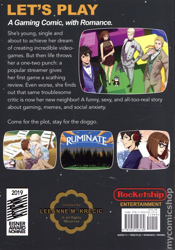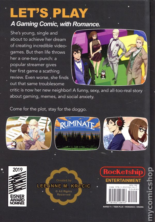 Volume 2 - 1st printing. Story and art by Leeanne M Krecic. She's young, single, and about to achieve her dream of creating incredible video games. But then life throws her a one-two punch: a popular streamer gives her first game a scathing review. Even worse, she finds out that same troublesome critic is now her new neighbor! A funny, sexy, and all-too-real story about gaming, memes, and social anxiety. Hardcover, 6-in. x 9-in., 204 pages, full color. Teen+ Cover price $24.99.