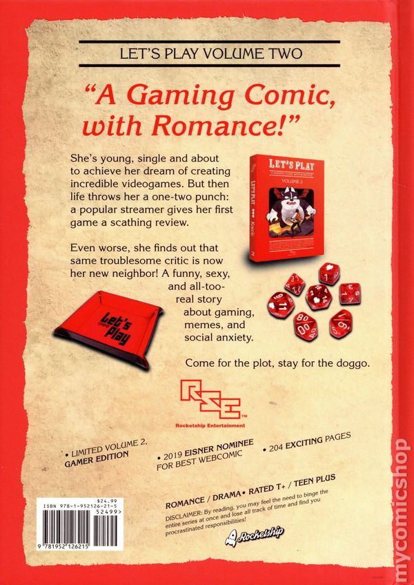 Volume 2 - 1st printing. Story and art by Leeanne M Krecic. Shes young, single and about to achieve her dream of creating incredible video games. But then life throws her a one-two punch: a popular streamer gives her first game a scathing review. Even worse, she finds out that same troublesome critic is now her new neighbor! A funny, sexy, and all-too-real story about gaming, memes, and social anxiety. Come for the plot, stay for the doggo. Hardcover, 6-in. x 9-in., 204 pages, full color. Teen+ Cover price $24.99.
