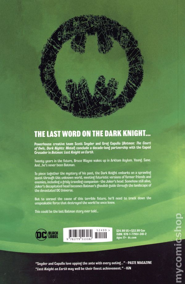 From the powerhouse creative team of writer Scott Snyder and artist Greg Capullo, the team that reinvented Batman from the emotional depths of Batman: Court of Owls to the epic power of Dark Nights: Metal, DC presents what could be the last Batman story ever told...