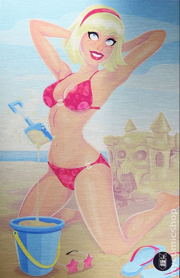 Great Wall of Comics Exclusive "Pink Bikini Sabrina" Metal Cover by Sam Payne - limited to 25 copies. Written by Jamie L Rotante and VARIOUS. Art by Holly G, Jim Amash and VARIOUS. A BRAND-NEW STORY kicks off this SUMMER FUN issue! In 'Babbi's Riverdale Beach Party,' to celebrate the release of the new Babbi movie, Veronica decides to throw an over-the-top beach party, with everyone dressed as their favorite Babbi doll. The Lodge Beach House is turned into a lifelike version of Babbi's Beach House-complete with unicorn rides on the beach! There are even some hints that a surprise guest will make an appearance-so when a handsome, young stranger shows up, EVERYONE wants to know who he is! All that plus even more fun in the sun stories and fabulous summer fashions! 32 pages, full color.