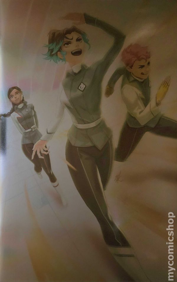 Written by Maria Ingrande Mora. Art and Cover by Jo Mi-Gyeong. If you had a chance to join the Power Rangers, would you do it? 13-year-old Sage lives on an isolated lunar colony with her adoptive father, but her days on the farm will change forever when she comes across a wreckage with wounded passengers… people from an academy training to be something called… POWER RANGERS! Fresh off their Free Comic Book Day preview, acclaimed YA author Maria Ingrande Mora (Fragile Remedy) and superstar artist Jo Mi-Gyeong (Eve: Children of the Moon) introduce a bold new expansion of the Power Rangers Universe! For the first time, discover the amazing school where Rangers are trained, and find out for yourself which Ranger color you would join! Would you test your might as a Red Ranger, never surrender as a Black Ranger, inspire those around you as a Pink Ranger, show no fear as a Yellow Ranger, or prove that you're the smartest kid on the team as a Blue Ranger? Enroll today! 32 pages, full color. Cover price $3.99.