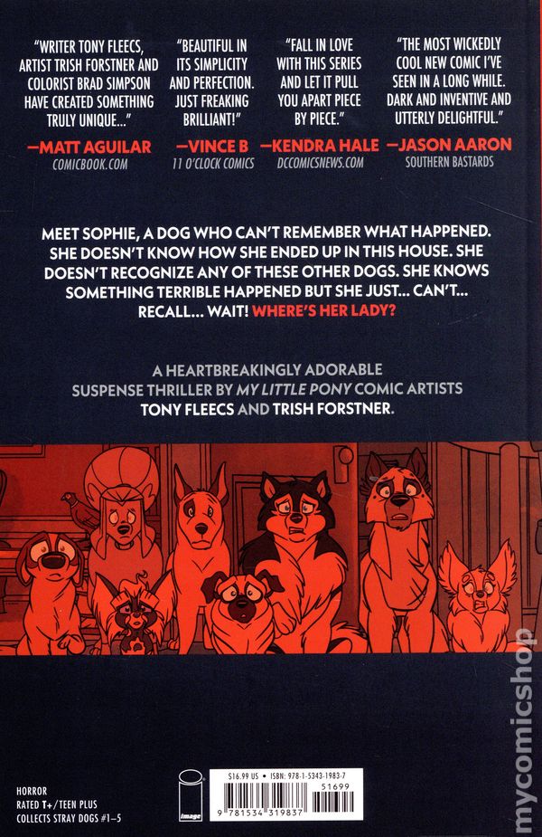 STRAY DOGS is a heartbreakingly adorable suspense thriller by My Little Pony comic artists TONY FLEECS and TRISH FORSTNER. It's Lady and the Tramp meets Silence of the Lambs.