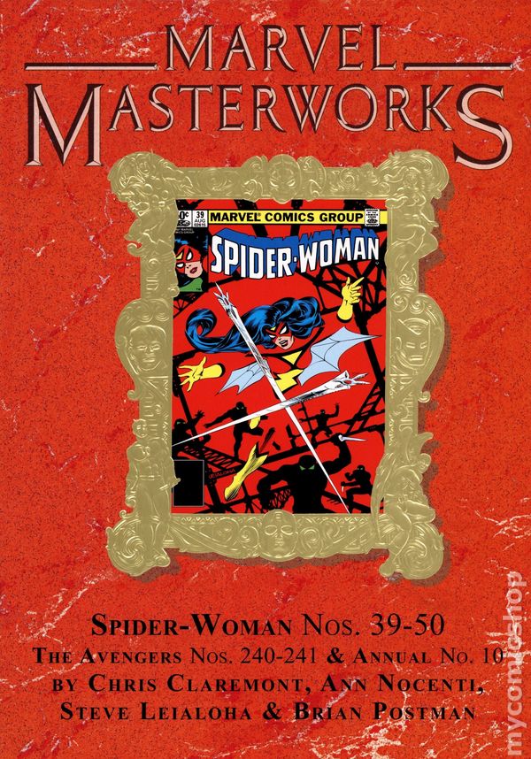 Volume 4 - 1st printing. Collects Spider-Woman (1978-1983 1st Series) #39-50, The Avengers (1963-1996 1st Series) #240-241, and The Avengers (1963-1996 1st Series) Annual #10. Written by Chris Claremont, Ann Nocenti, and Roger Stern. Art by Steve Leialoha, Brian Postman, Michael Golden, Al Milgrom, Bob Wiacek, Carl Potts, Sam de la Rosa, Armando Gil, Joe Sinnott, and Andy Mushynsky. Cover by Steve Leialoha. Jessica Drew (A.K.A. Spider-Woman) has migrated up the left coast to San Francisco, and her adventures are about to escalate to a whole new level! The Yakuza have infiltrated the SFPD and marked Spider-Woman for death, while the mystic Morgan Le Fay seeks out Jessica with revelations about her connection to the demonic Darkhold! And things get personal in a saga featuring the Silver Samurai and Viper that has shocking implications for our hero's parentage! Chris Claremont and Steve Leialoha then make way for the new creative team of Ann Nocenti and Brian Postman. Their run closes out Spider-Woman's original series with her untimely demise - but death is not the end when you have the Avengers as friends! Hardcover, 400 pages, full color. Rated T Cover price $75.00.