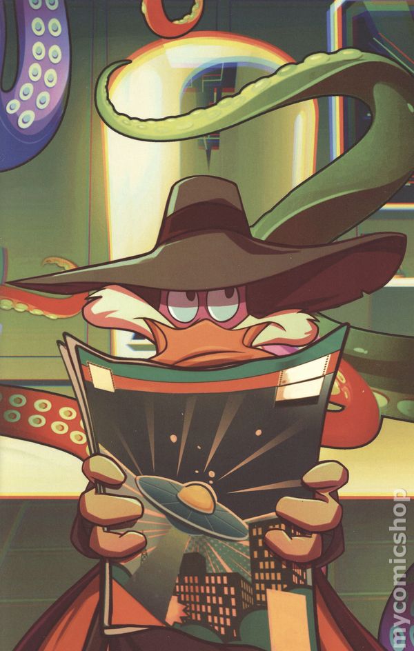 Limited 1 for 15 Retailer Incentive Variant Cover. Written by Roger Langridge. Art by Carlo Lauro. Cover by Francesco Tomaselli. Gosalyn makes a new friend! He's nice, but kinda odd… maybe a little strange… OK, he's an alien. An alien hiding out on Earth, for mysterious reasons. And when those 'mysterious reasons' show up to take Gos's new friend, the JUSTICE DUCKS are in a pickle. Do they let the authoritative aliens do their thing, or do they protect the slightly strange alien kid from evil forces? Find out in Justice Ducks #4! 32 pages, full color. Cover price $4.99.