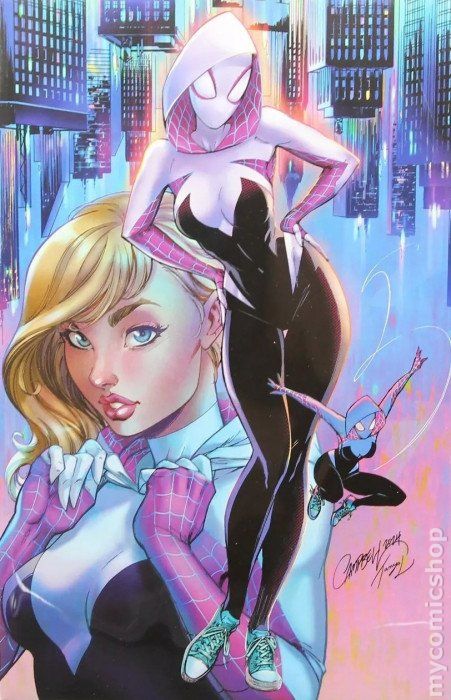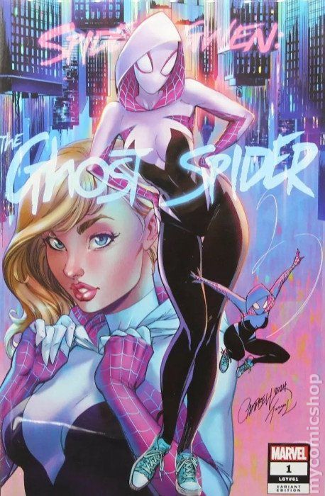 JScottCampbell.Com Exclusive Virgin Cover by J. Scott Campbell. Written by Stephanie Phillips. Art by Chris Campana. TRAPPED IN THE 616...FOR GOOD! Welcome to New York! Gwen truly becomes a Ghost-Spider when she moves full time to the universe where Gwen Stacy died years ago. But why did she leave Earth-65? Why aren't the other spiders supposed to know she's here? Why isn't she supposed to suit up? And who will get hurt when she does? 36 pages, full color. Rated T+