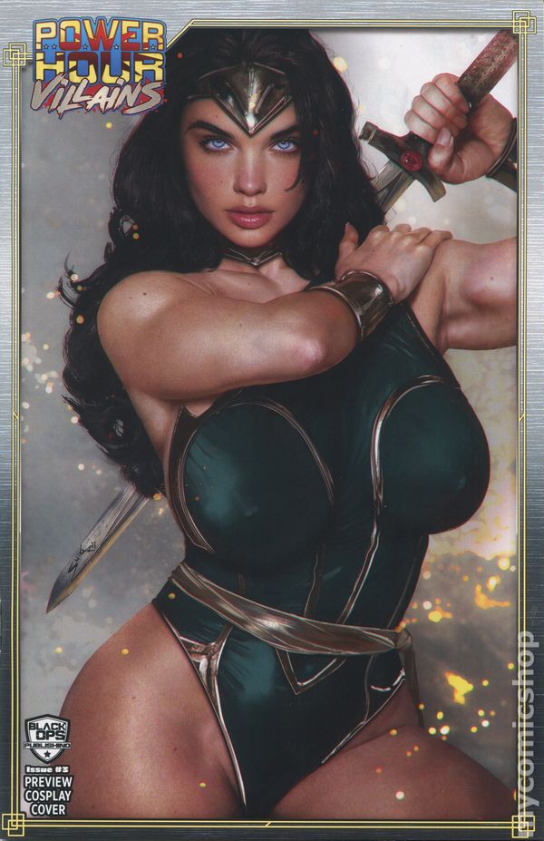 Preview Edition. "Villains - Power Princess / Wonder Woman" Edition Up-Close Trade Naughty Foil Cover by Shikarii - Limited to 15 copies. Preview of Power Hour #3. Story by Shawn Hudachko and Dolan Waddick. Art by Narcelio Sousa and Ale Garza. 24 pages, full color and B&W.
