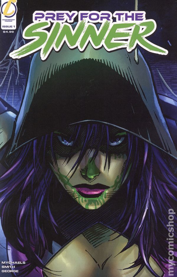 Written by Marat Mychaels. Art by Dietrich Smith. PREY FOR THE SINNER is a story of Dr. Synthia 'SYN' Kemp a resident prison psychologist at prison asteroid Devil's Den Maximum Security Facility. The 'Den' houses the most heinous criminals in the universe...if you're a prisoner at Devil's Den then you're the worst of the worst. During a prison riot Synthia gets violently assaulted and left for dead by the most ruthless prisoners in the 'Den'. Somehow she survives (a mystery that will unfold). She comes out of her coma and discovers some new found abilities. These new capabilities help her facilitate the only thing on her mind vengeance...bloody... violent... vengeance! What ensues is an intergalactic game of cat and mouse with mind bending twists and turns that you'll never see coming....SYN chasing her assailants while being chased by the authorities as her mysterious origin unfolds. 24 pages, full color, not rated Cover price $4.99.