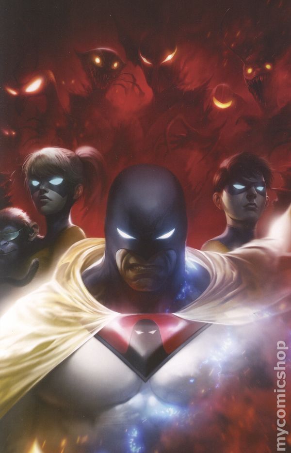 (W) David Pepose (A) Jonathan Lau (CA) Jae Lee, June Chung CAUGHT BETWEEN A ROCK AND A SHARK PLACE! In an effort to stop the perpetual feuding between the Crystalline Empire and the Kingdom of the Space Sharks, Space Ghost and the twins are guarding a summit between the two powers — only to have it derailed by a mysterious assassination attempt. With interplanetary war now looming, can the team track down the culprits in time to pull everyone back from the brink of annihilation? Find out in the most world-shaking issue of DAVID PEPOSE and JONATHAN LAUs Space Ghost yet — featuring appealingly apocalyptic covers from FRANCESCO MATTINA, JAE LEE & JUNE CHUNG, MICHAEL CHO, and BJORN BARENDS! 32 pages, full color, rated teen. Cover price $4.99.