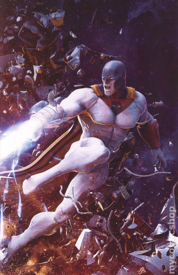 Limited 1 for 10 Retailer Incentive Variant Cover. (W) David Pepose (A) Jonathan Lau (CA) Bjorn Barends CAUGHT BETWEEN A ROCK AND A SHARK PLACE! In an effort to stop the perpetual feuding between the Crystalline Empire and the Kingdom of the Space Sharks, Space Ghost and the twins are guarding a summit between the two powers — only to have it derailed by a mysterious assassination attempt. With interplanetary war now looming, can the team track down the culprits in time to pull everyone back from the brink of annihilation? Find out in the most world-shaking issue of DAVID PEPOSE and JONATHAN LAUs Space Ghost yet — featuring appealingly apocalyptic covers from FRANCESCO MATTINA, JAE LEE & JUNE CHUNG, MICHAEL CHO, and BJORN BARENDS! 32 pages, full color, rated teen. Cover price $4.99.