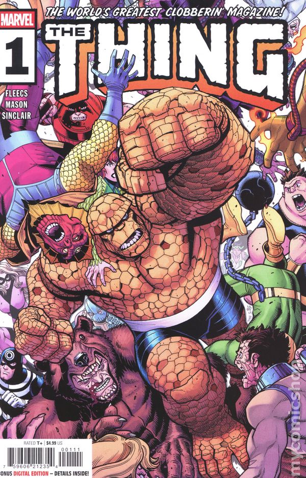 Limited 1 for 25 Retailer Incentive Variant Cover. Written by Tony Fleecs. Art by Leonard Kirk. Cover by Marco Checchetto. THE THING CLOBBERS THE MARVEL UNIVERSE! Ben Grimm may be the strongest member of the Fantastic Four, but once upon a time, he was just a scrawny kid from Yancy Street. When an unexpected visitor from his past sends him on a search for a missing child, the Thing must unravel the mystery even if that means becoming a wanted man! Get ready to see the Ever-Lovin' Blue-Eyed Thing versus every super-powered criminal and bounty hunter in New York City! Writer Tony Fleecs (Stray Dogs) and artist Leonard Kirk (STAR WARS: THE BATTLE OF JAKKU) give a glimpse into the history of the Thing that reminds you why Ben Grimm is the heart of the Marvel Universe…and why you don't want to let him hear you say that! 32 pages, full color. Rated T+ Cover price $4.99.
