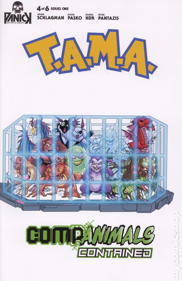 (W) Adam Schlagman, Doug Pasko (A) Daniel HDR (CA) Daniel HDR Panick Entertainment Presents: T.A.M.A. #4. The virtual pet that wants to Kill Em All! The hottest new original book of the year continues as its become crystal clear that TAMAs a murderous beast. As TAMAs victims become more personal to Kit, can the grieving teen bring himself to turn off his furry fearsome friend? And what atrocious tragedy will occur this issue to someone dear to him? Cover B by Daniel HDR, featuring a look at TAMA's Companimal friends in an homage to Pokemon. 32 pages, full color, not rated. Cover price $4.99.