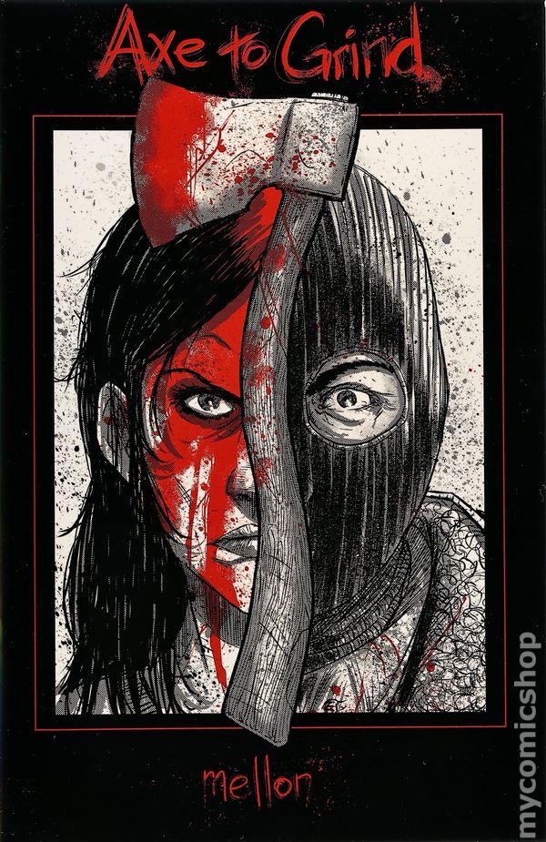 Third Eye Comics Exclusive Variant Cover by Kevin Mellon. Story and Art by Kevin Mellon. The ultimate in horror comics -- AXE TO GRIND summons up sleazy VHS slashers from the big time of FRIDAY THE 13TH to the obscure of THE TOOLBOX MURDERS to channel that late night clamshell big box video energy into the bloodiest, most brutal comic book you'll ever read.
