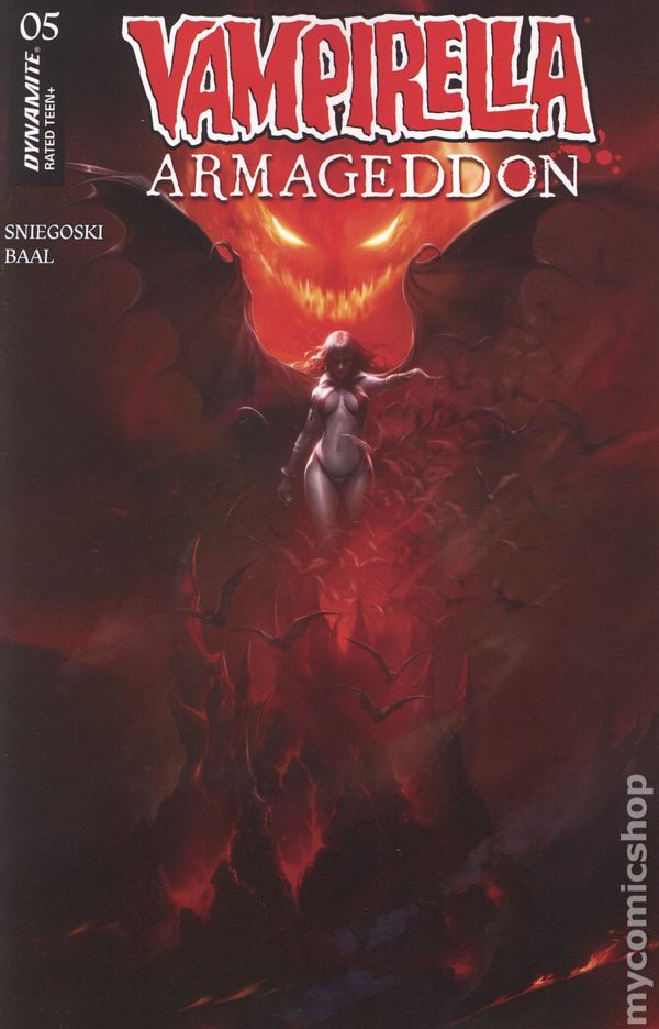 (W) Tom Sniegoski (A) Kewber Baal (CA) Francesco Mattina HELL IS FOR HEROES! After enjoying a brief respite from the torments of the damned by holing up inside a giant worm (dont ask…), Vampirella and Walker face off against the literal hordes of Hell when theyre caught between the warring factions of the Drujh and the Legions of the Shroud! Unrepentant correspondents TOM SNIEGOSKI and KEWBER BAAL report back from the infernal front lines in Vampirella: Armageddon #5 — supported by sizzling covers from FRANCESCO MATTINA, LESLEY LEIRIX LI, JOSEPH MICHAEL LINSNER, and smoking-hot cosplay from LAUREN DELOREAN! 32 pages, full color, rated teen+. Cover price $4.99.