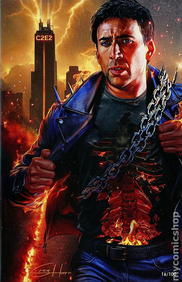 $30 FAME: Nicolas Cage Greg Horn Art C2E2 "Ghost Rider" Virgin Cover #/100 Clicking on the links to the eBay listings shown above and then making a purchase may result in MyComicShop earning a commission from the eBay Partner Network.