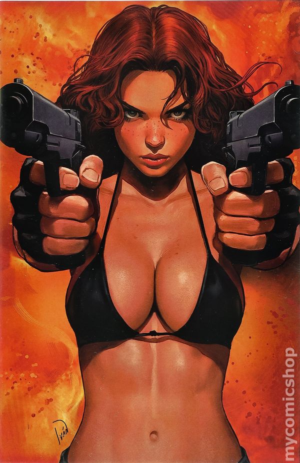 The 616 Comics and Comic Traders Exclusive "Black" Virgin Cover by Ivan Talavera. Written by Charles Ardai. Art by Ace Continuado. Perfect for fans of Gun Honey, pulp fiction and crime thrillers! Set in the GUN HONEY universe, starring the fiery ex-girlfriend of Gun Honey Joanna Tan - a master of disguise and deception! A biological weapon that could kill millions…a scientist's daughter who needs to disappear…and HEAT SEEKER Dahlia Racers is on the job! But can she beat a beautiful mercenary unable to feel heat, cold, fatigue, or pain? 'THE FINEST KIND OF PULP NOIR.' ED BRUBAKER 28 pages, full color. Rated M