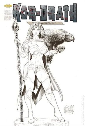 Second Printing. Cover by Budd Root. Story by Andy Smith and Dennis Turner, art by Dennis Turner, colors by Nanjan Jamberi. After the tribe of the barbarian Kor_Drath, known as the Red Lions, was brutally massacred by the undead, he and his companion, the Sorceress Adryana, hailing from the sister tribe of the Black Eagles, embark on a vengeful journey to seek justice against those responsible for the heinous act. Little do they know, their quest unfolds to reveal a hidden world brimming with adversaries, ranging from the undead to powerful demons, who step out of the shadows. As the lovers confront these formidable foes, they start to realize that they are merely pawns in a terrifying and treacherous game that poses a far greater danger. 76 pages, squarebound, full color. NOTE: Generic image is of a signed copy, however not all copies are signed. Check the individual item listing to verify if the copy you plan to purchase is noted as being signed.