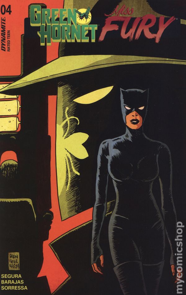 Written by Alex Segura, Henry Barajas. Art by Federico Sorressa. Cover by Jacob Edgar. With Miss Fury missing in action and the case of the Silver Shrike's murder unraveling around them, the Green Hornet and Kato find their mutual resentments boiling over into a no-holds-barred brawl! Will the two crimefighting partners come to their senses in time to save the city? Or is this truly the end for one of the most iconic partnerships in comic book history? Find out in this penultimate issue of The Green Hornet/ Miss Fury, as breathlessly reported by ALEX SEGURA and HENRY BARAJAS and unflinchingly illustrated by FEDERICO SORRESSA - with scandalous covers provided by FRANCESCO FRANCAVILLA, JAE LEE & JUNE CHUNG, JONATHAN CASE, and JACOB EDGAR! 32 pages, full color. Rated T Cover price $4.99.