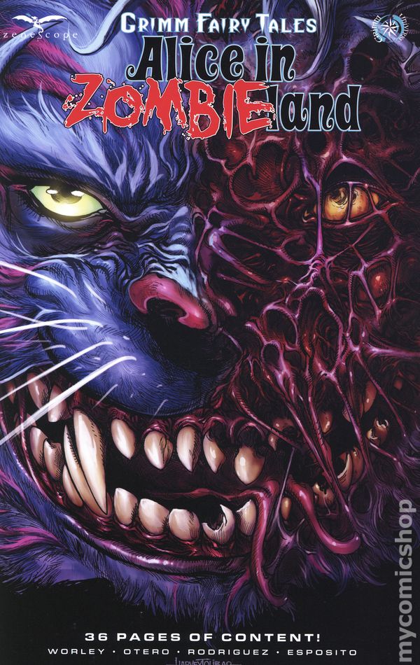 Written by Joe Brusha, Dave Franchini. Cover by Igor Vitorino. Take another trip with Zenescope, down the rabbit hole, where the realm of dreams shows its true nature. Nothing is as it seems in this world, and when a familiar visitor finds her way into the madness that is Wonderland, she is followed by something even more horrible than the darkest nightmares that already haunt this place-Zombies! All hell is breaking loose and only Alice and a few new allies can hope to put the horrors back where they belong! 44 pages, full color. Rated M Cover price $5.99.