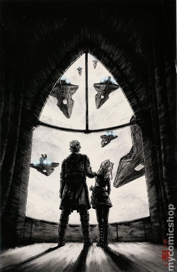 Limited Edition Virgin Cover by Takashi Okazaki. Written by Rodney Barnes. Art by Georges Jeanty. THE JEDI, THE WITCH AND THE WARLORD! The heroes race to prevent Grand Admiral Thrawn's escape! 40 pages, full color. Rated T