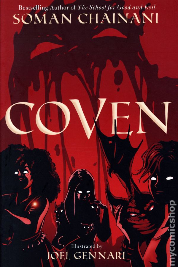 1st printing. Written by Soman Chainani. Art and cover by Joel Gennari. A stand-alone upper middle grade fantasy graphic novel that follows the adventures of Hester, Anadil, and Dot, the witch coven from the School for Good and Evil series. Need your magical crime solved? Call the Witch Coven. Hester, Anadil, and Dot are legendary across the Endless Woods as vigilante detectives and protectors of the peace. The famed trio are not only talented witches but also ride-or-die friends who've never left a case unsolved. That is, until the Coven answers a call for help from a mysterious new world-Red Isle, where the Light and Dark Lands are on the brink of all-out war, each blaming the other for a grim spree of deaths. Now the Coven must work together and unmask the killer before Red Isle tears itself apart. Little do they know: the real enemy might be hiding in plain sight... Softcover, 6-in.x 9-in., 272 pages, full color. Cover price $15.99.