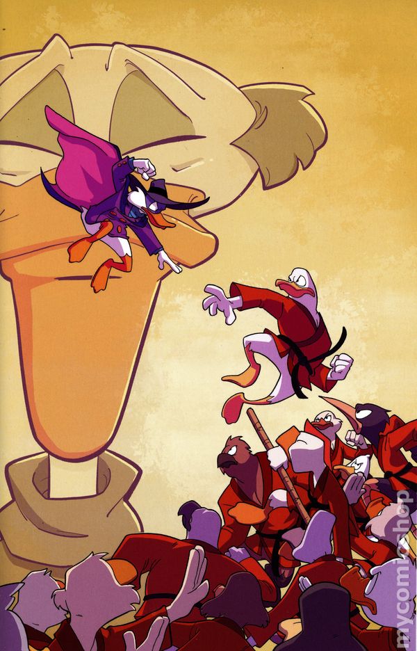 Limited 1 for 15 Retailer Incentive Variant Cover. Written by Daniel Kibblesmith. Art and Cover by Ted Brandt, Ro Stein. CROUCHING GANDER, HIDDEN MALLARD! As a costumed crimefighter with years of experience safeguarding the streets of St. Canard, Darkwing Duck is, of course, a seasoned master of wing-to-wing combat. But how, exactly, did this avian avatar of justice become so proficient in the ways of the fist and (webbed) feet? For years the full story has been shrouded in mystery - until now! In this special Untold Tale of Darkwing Duck, readers will be transported back to DW's earliest days at the Training Temple of the Venerable One, where the Old Master imparted wisdom and takedowns in equal measure - and where a young Darkwing learned the value of patience, self-control, and standing up to bullies! Wizened calligrapher DANIEL KIBBLESMITH and Zen brush masters TED BRANDT & RO STEIN achieve perfect harmony in Darkwing Duck #3 - sealed with singular covers by BRANDT & STEIN, MARK BAGLEY, NICOLETTA BALDARI, CIRO CANGIALOSI, and original animated show creator TAD STONES! 32 pages, full color. Cover price $4.99.