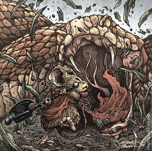 Written by David Petersen. Art by Gabriel Rodríguez. Cover by Gabriel Rodríguez. The origin story of the Black Axe continues!Bardrick, the first wielder of the Axe, continues his campaign against the serpents surrounding the mouse territories, but even he cant be everywhere at once… The legendary weapon-bearer must serve his duty, but can he truly manage it all on his lonesome?! 32 pages, full color. Cover price $4.99.